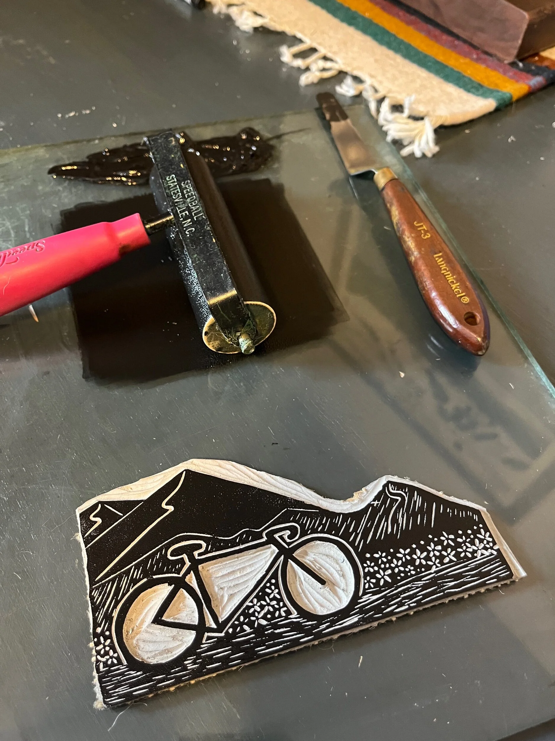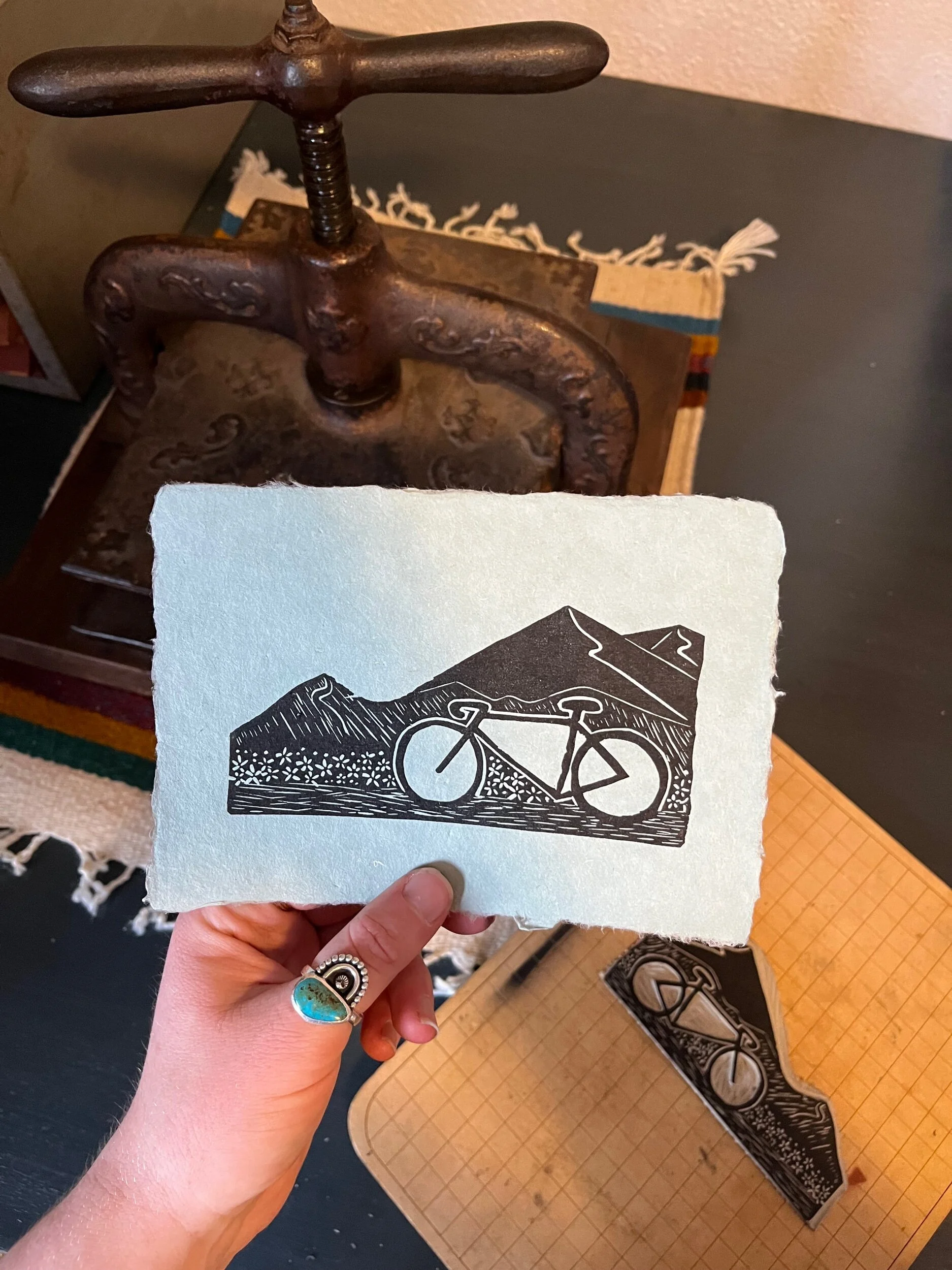 Hand drawn and carved oyster block print on handmade 5×7 inch paper. Printed with black Caligo Cranfield ink.