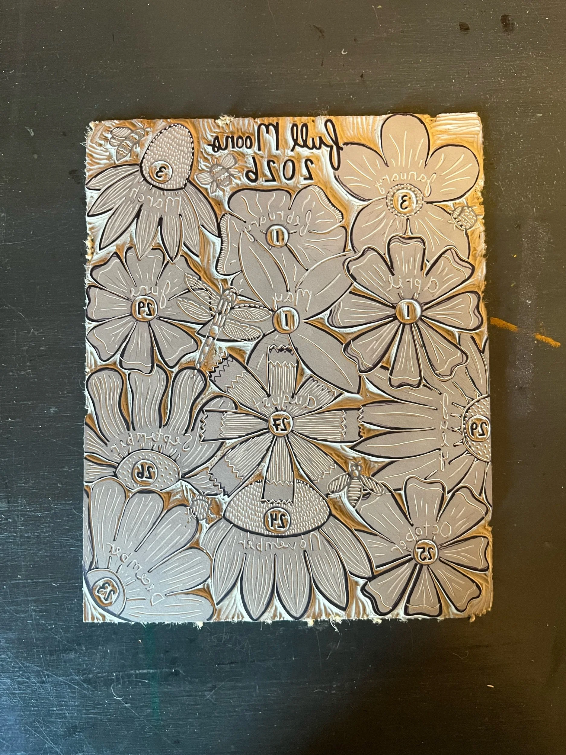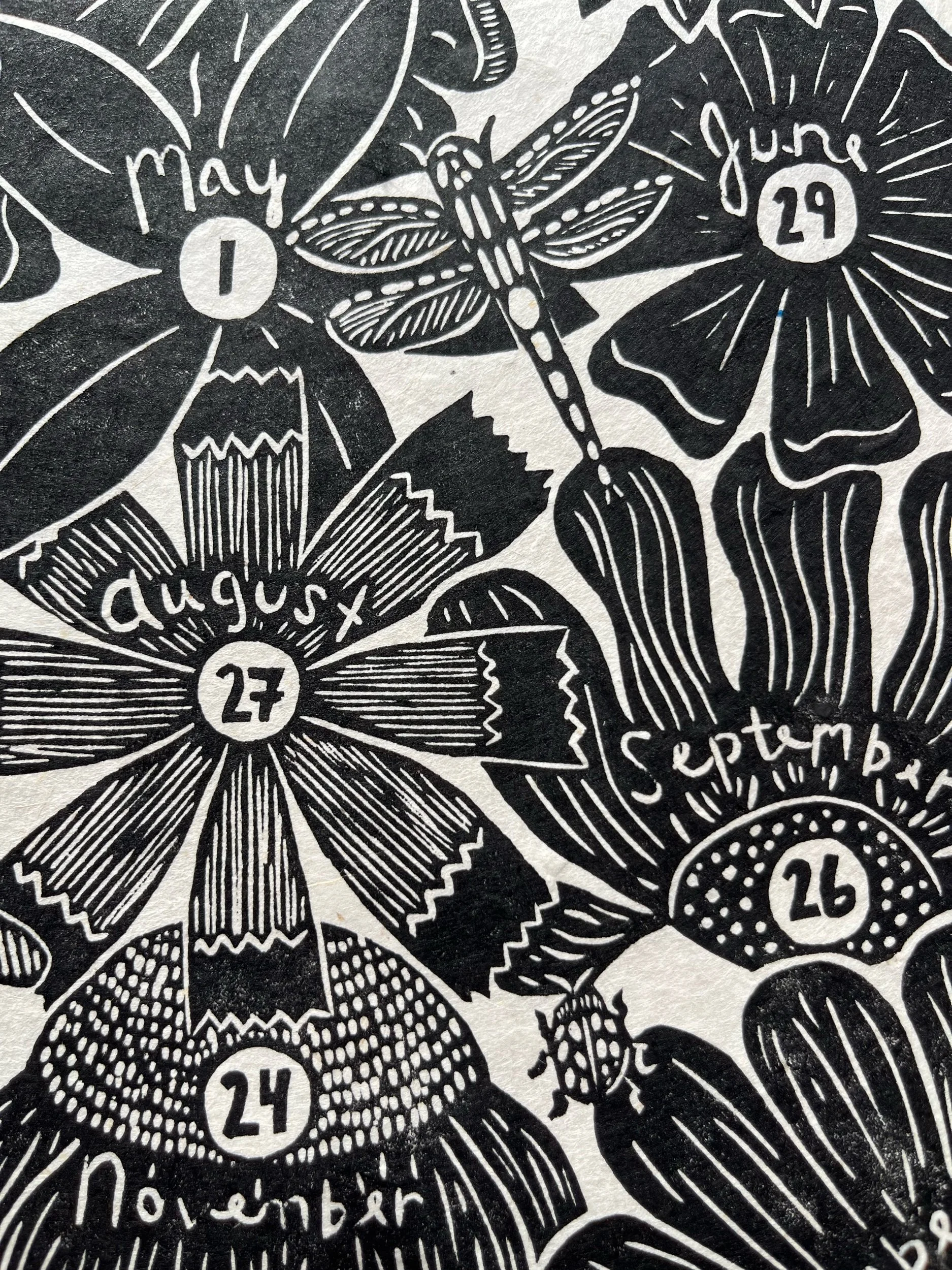 Hand drawn and carved map of the San Juan Islands. Printed in Caligo Cranfield ink on 12 x 18 paper.