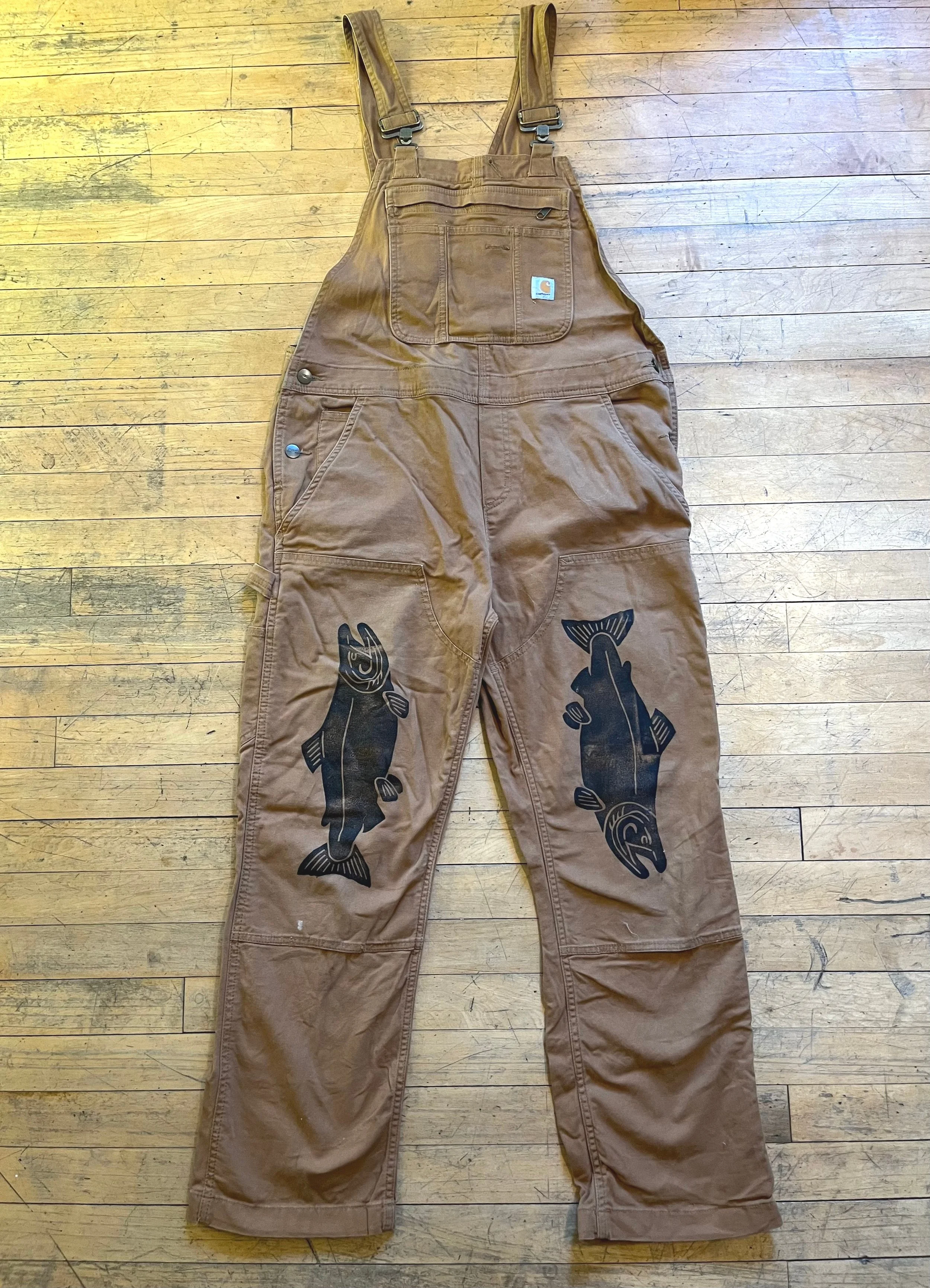 Classic Carhartt tan double knee overalls with salmon- hot damn!! Ready for river or brewery hangs, or chilly days outside, you name it!